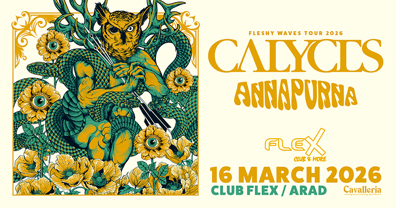 Una dintre cele mai prolifice trupe ale scenei grecești, Calyces vine la CLUB FLEX în cadrul turneului lor de primăvară, după un 2025 intens: lansarea albumului Fleshy Waves of Probability și o amplă turneu european cu multiple opriri în România.