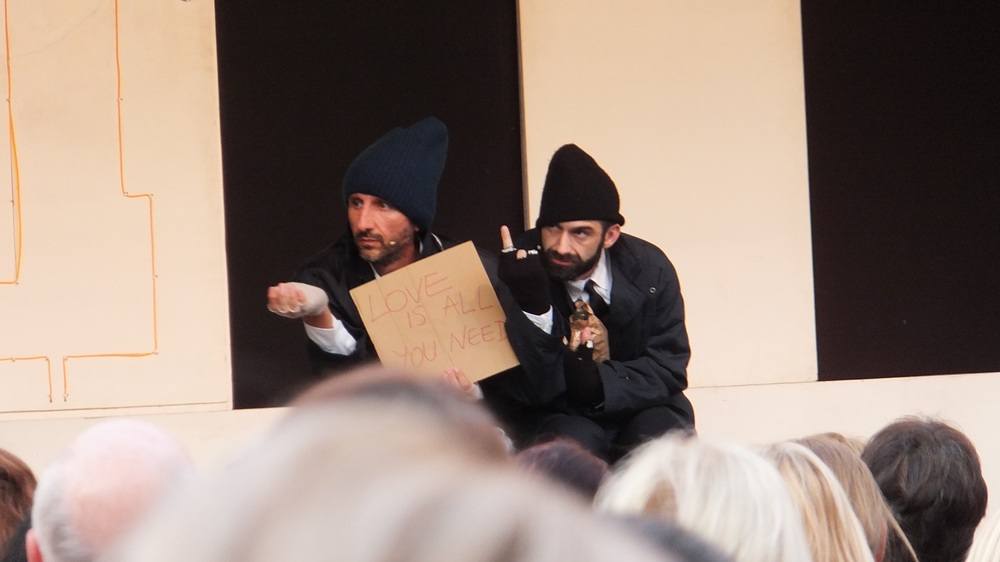 În sfârșit, cei doi ajung să urască efectiv pe toată lumea, refuzând să își observe propria condiție. Tot de pe bordură. O lasă mai moale doar după ce își amintesc că până și Iisus a dat de băut și ajung la concluzia că singurul lucru care merită pe bune e iubirea însăși. „Să mergem să iubim! Neveste n-avem, dar le iubim pe ale altora. Avem neveste-n sală? Stinge, mă, lumina!”